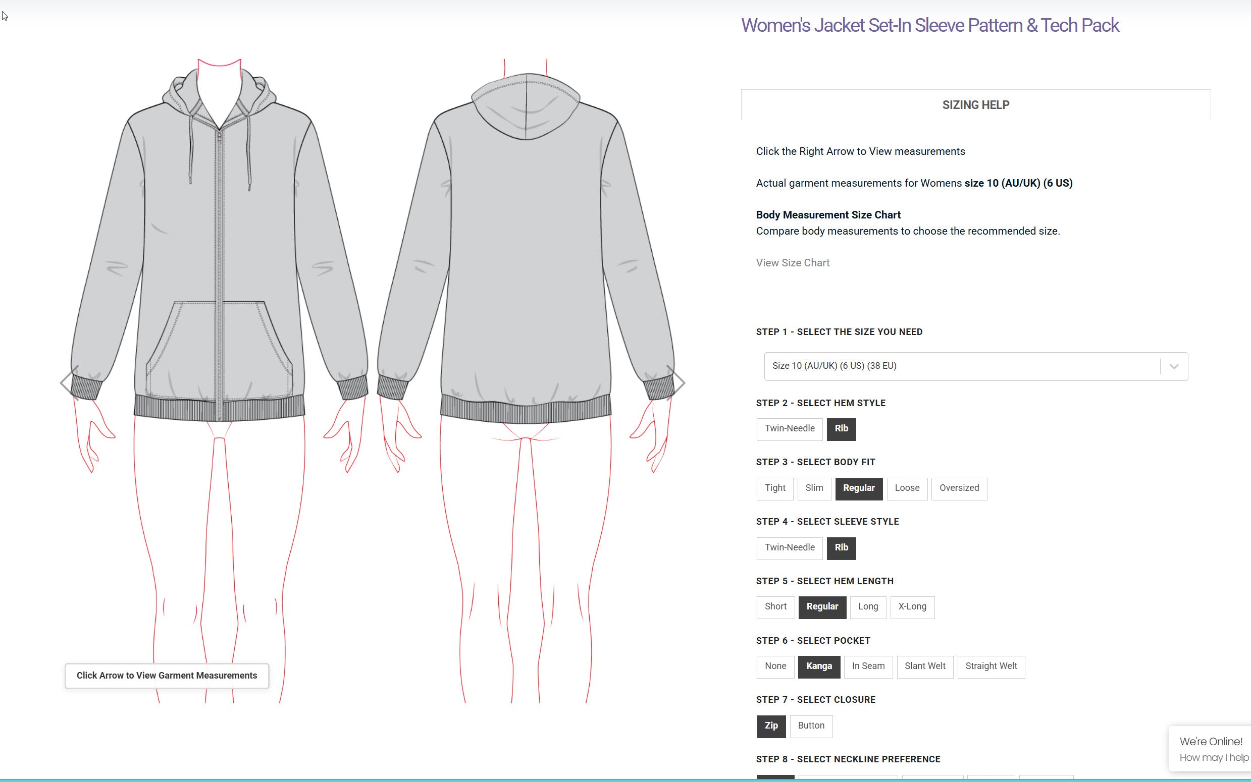 If you need to chat about your design or make a change, book a fitting with a pattern maker.